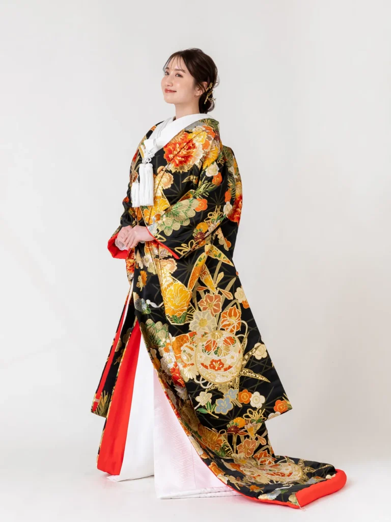 華やかな刺繍や織りの美しさが際立つ色打掛、凛とした佇まいが魅力の白無垢など、